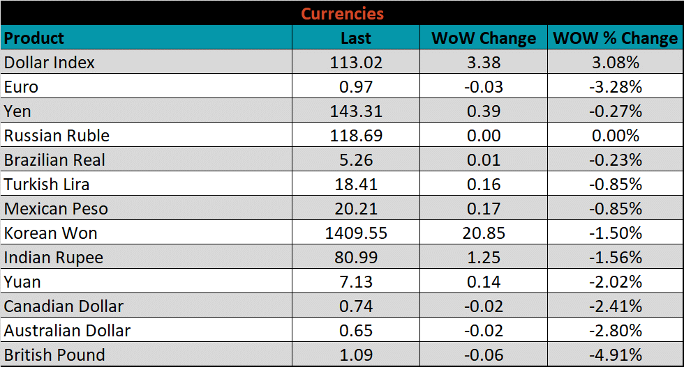 The CME Midwest HRC futures curve is below, with last Friday’s settlements in white. The entire curve continued its trend over the last three weeks and shifted lower. The 1Q23 is now trading at its lowest level since the contract began trading.