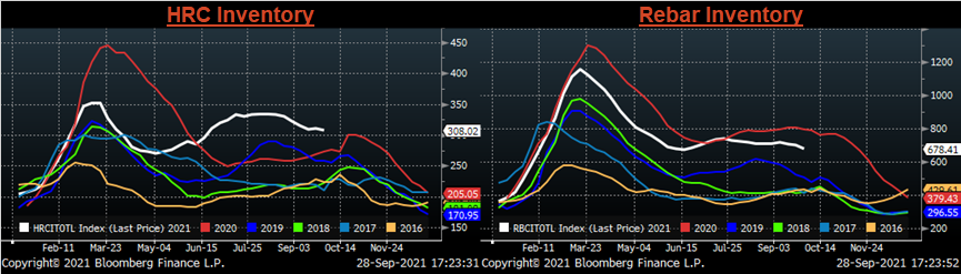 This dramatic increase in price is emblematic of how severe the shipping constraints are in the face of rising global demand. Additionally, with fears of global natural gas outages caused by bottlenecks, there is no reason to believe global shipping will ease in the coming 6 months. With the limited vessels available and booked out until further notice, it is hard to see how this will not impact steel imports planned to arrive next year. From a domestic perspective, log jams at every port, lack of available drivers and inclement weather have left us with a logistics crisis leading to regional shortages and surpluses and rapidly increasing prices. Inventory short buyers waiting on material may be forced back into the market to fulfill short-term needs with the newly available spots tons. However, this squeeze will not last forever, and as an increasing number of deliveries continue to be delayed, the possibility of these older, less expensive tons arriving all at once also increases.