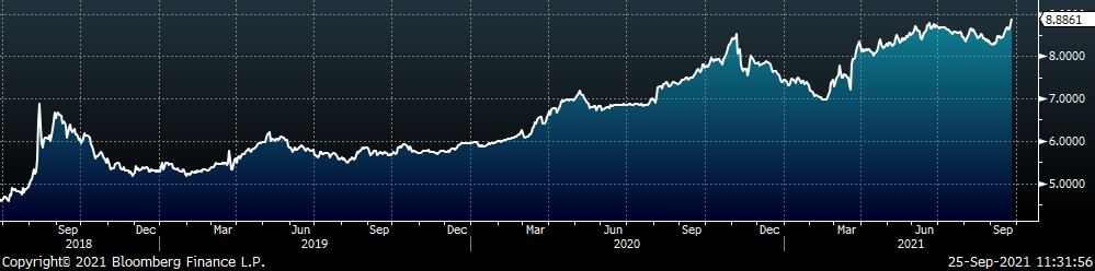 While ripples from supply chain disruption caused by the global pandemic will continue to be felt indefinitely in cost and availability, it is nearly impossible to know how or when these issues will start to ease and eventually be resolved. The fact of the matter is that logistics issues are capping current consumption, for many in the steel consuming industries this has looked like an increased backlog and sustained long-term demand, leading to higher prices. The chart below shows the Baltic Dry Index, used to track the global cost of shipping iron ore and coal, which has nearly doubled it’s 10-year peak from September 2019.