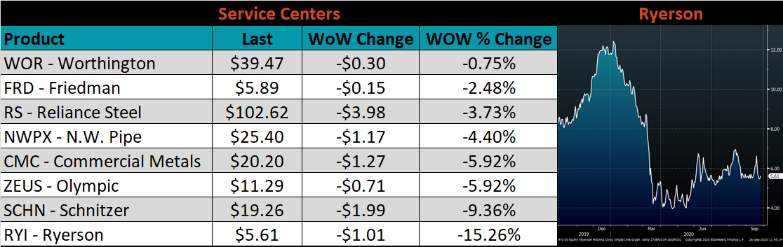 Raw material prices were mixed. Aussie coking coal was up another 4.5%, while the IODEX Index was down another 7.3%.