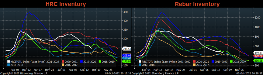 These two closely watched data points indicate a proactive reduction in supply, even culminating in the indefinite idling of multiple BOF mills both domestic and abroad, an action typically viewed as a “last resort.” However, our view is that neither of the supply side factors will be enough of a catalyst to cause a rally. Instead, we will look for destocking inventories and increasing lead times as signals that the floor has been reached. Depending on how long it takes for this to occur, these supply-side factors will play a key role in how high prices climb once demand concerns abate.