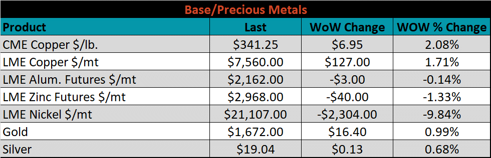 The CME Midwest HRC futures curve is below, with last Friday’s settlements in white. The curve traded higher early in the week before erasing those gains on Thursday and Friday, leaving most expirations only slightly higher on the week.
