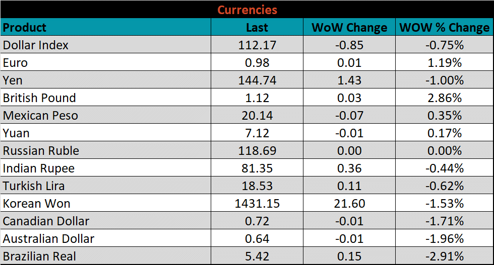 Global prices were mostly lower, led by the Southern European HRC price, which was down 5.1%, while Mexican HRC and CRC were up 0.7%.