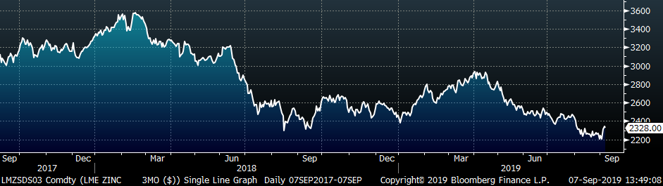 Base and precious metals future pricing was mixed. LME zinc gained 5.6%.