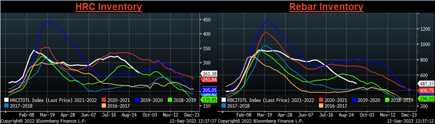 September flat rolled import license data is forecasting a significant decrease of 233k to 768k MoM.